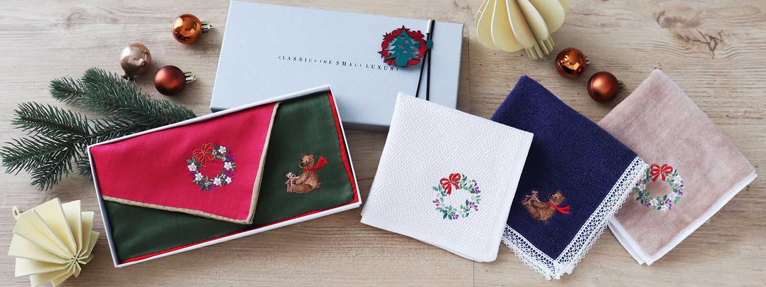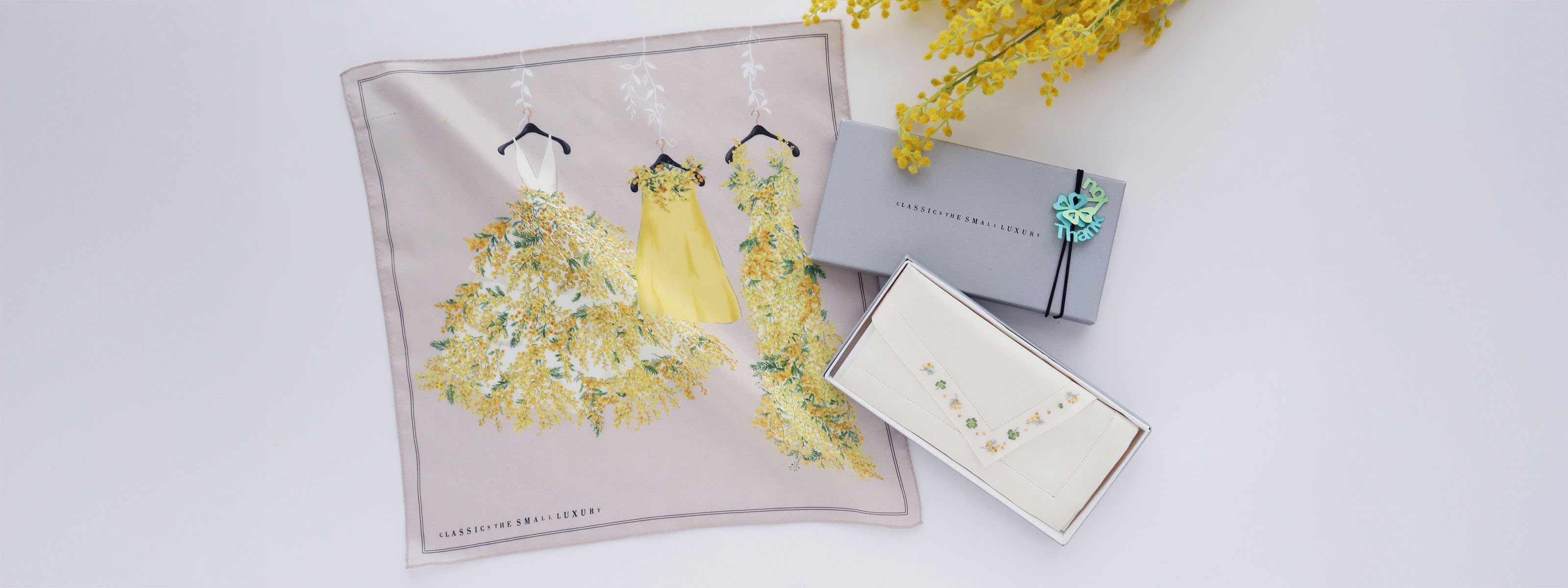 クラシクス・ザ・スモールラグジュアリは、1879年創業のブルーミング中西が長年のモノづくりを経て「密やかな贅沢」をお届けしたいという想いから誕生したハンカチーフ専門ブランド。