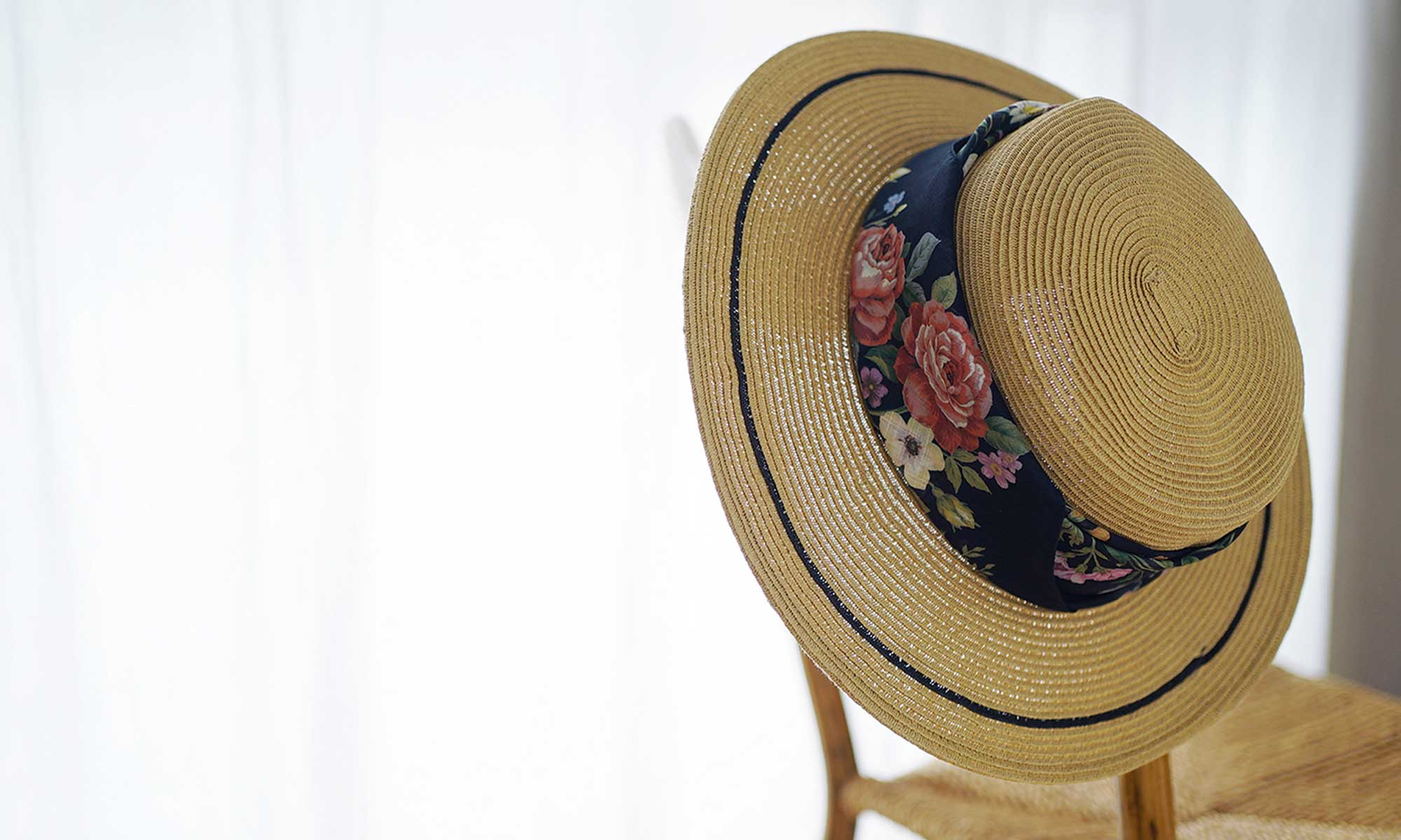 Simply wrap a large handkerchief around your hat and tie it at the back or side. It is easy to remove, so you can try it out easily.