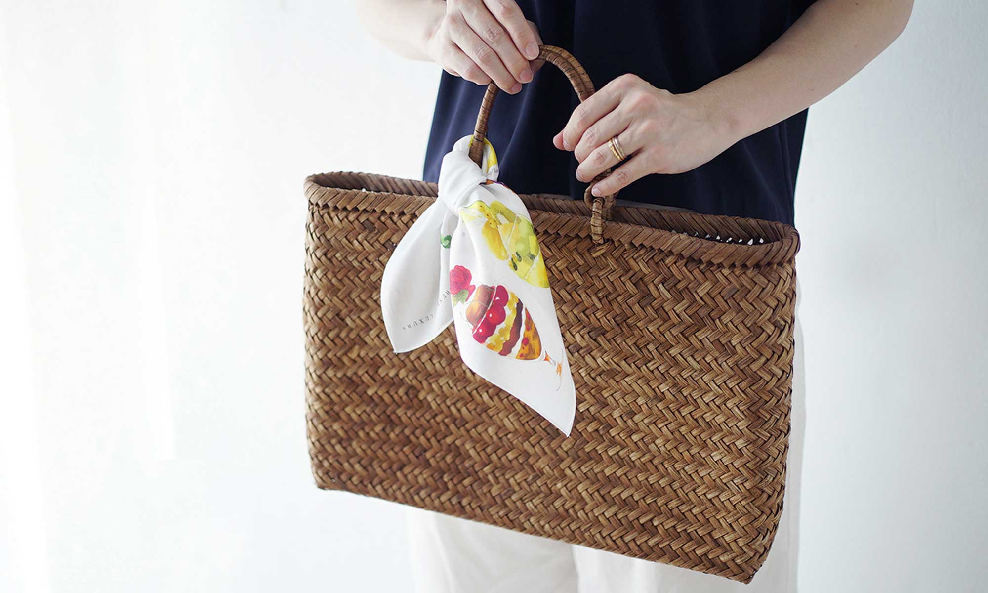 Tie a handkerchief to one of the handles or wrap it around the entire handle to prevent dirt. You can enjoy a variety of tying methods to match the bag design and the handkerchief pattern.