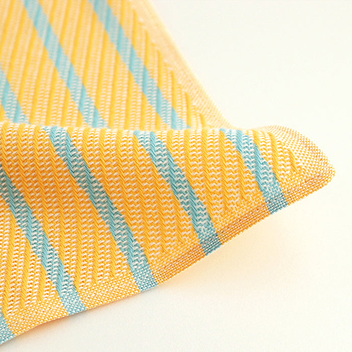 程よい厚みでハンカチーフとタオルの中間のような柔らかな触り心地。最高品質コットンといわれる海島綿を使用している為、光沢もありしわになりにくい仕上がりです。